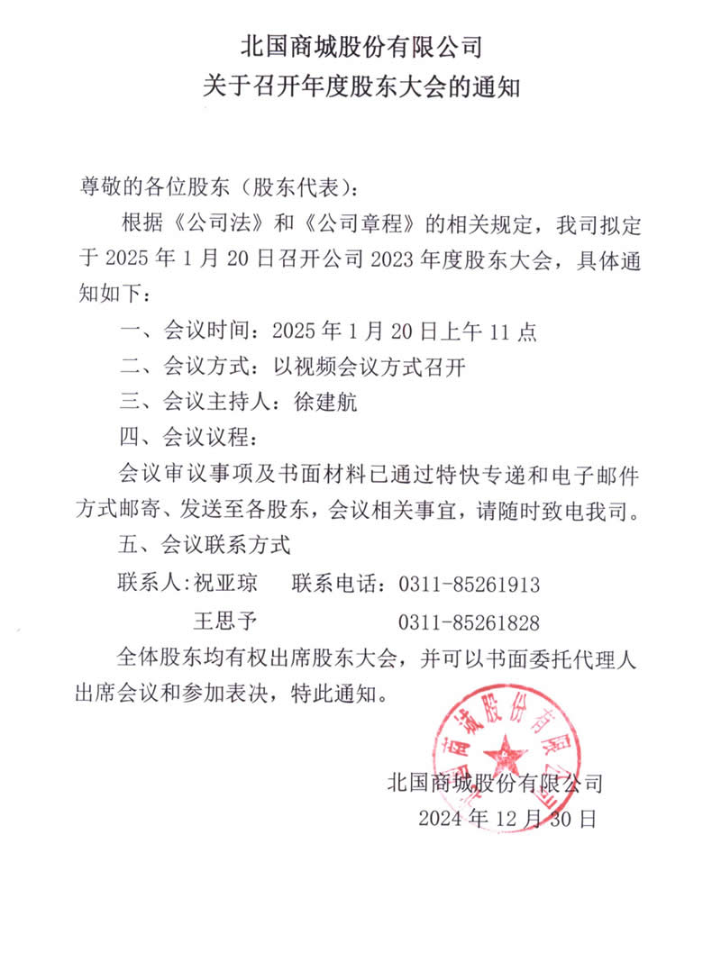北國商城股份有限公司關于召開年度股東大會的通知