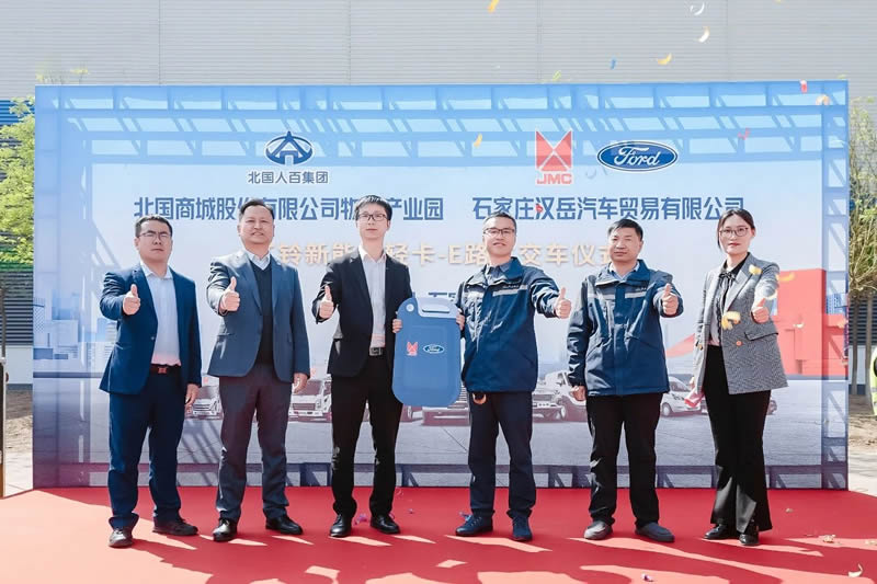 2025年4月10日上午,北國物流產業園隆重舉行了新能源車交車儀式,14輛江鈴輕卡-E路達新能源車,將替代原有燃油車開始進入北國物流產業園城配運輸序列。